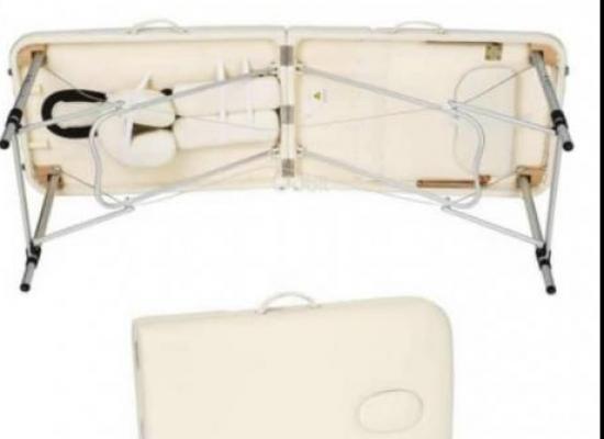 Table de massage trois pliante bois et aluminium venant toute neuve dans son carton dimension 60cm et dimension 70cm largeur avec une livraison gratuite et le montage à Dakar