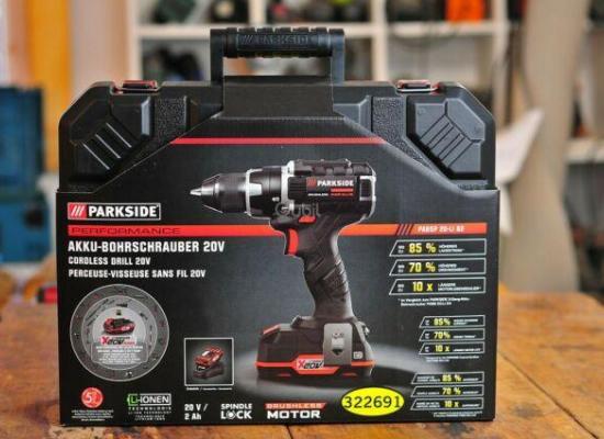 Perceuse sans fil parkside x20v pabsp 20 li b2 kat performance (sans balais/brushless, avec batterie
