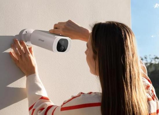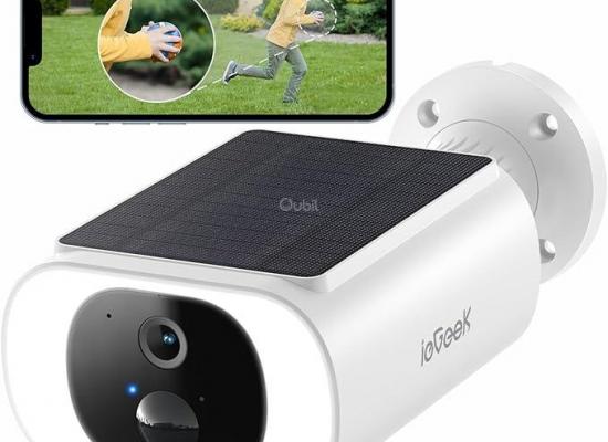 Caméra de surveillance sans fil ieGeek 2K – Caméra extérieure sans fil IP66 avec batterie, panneau s